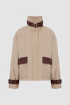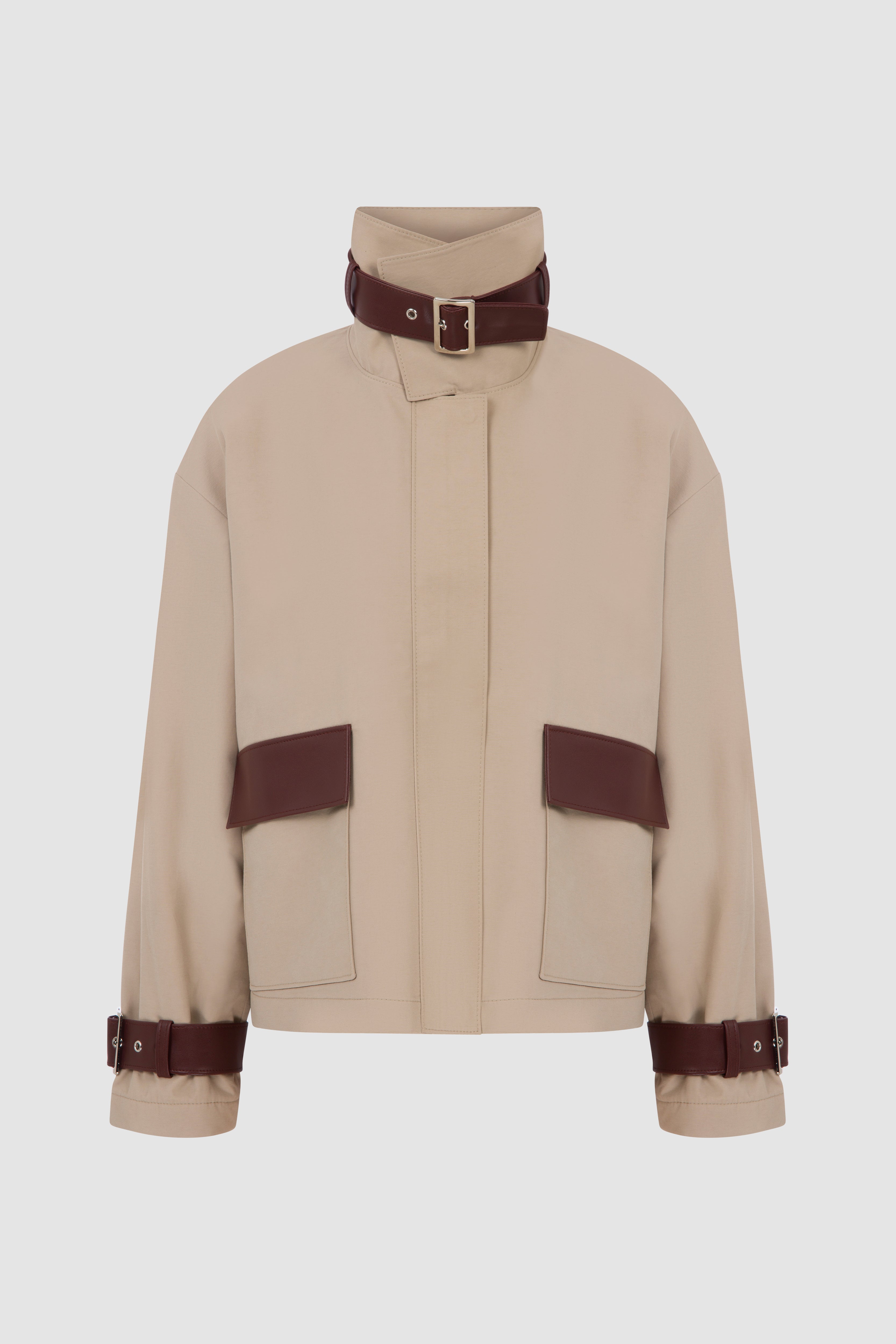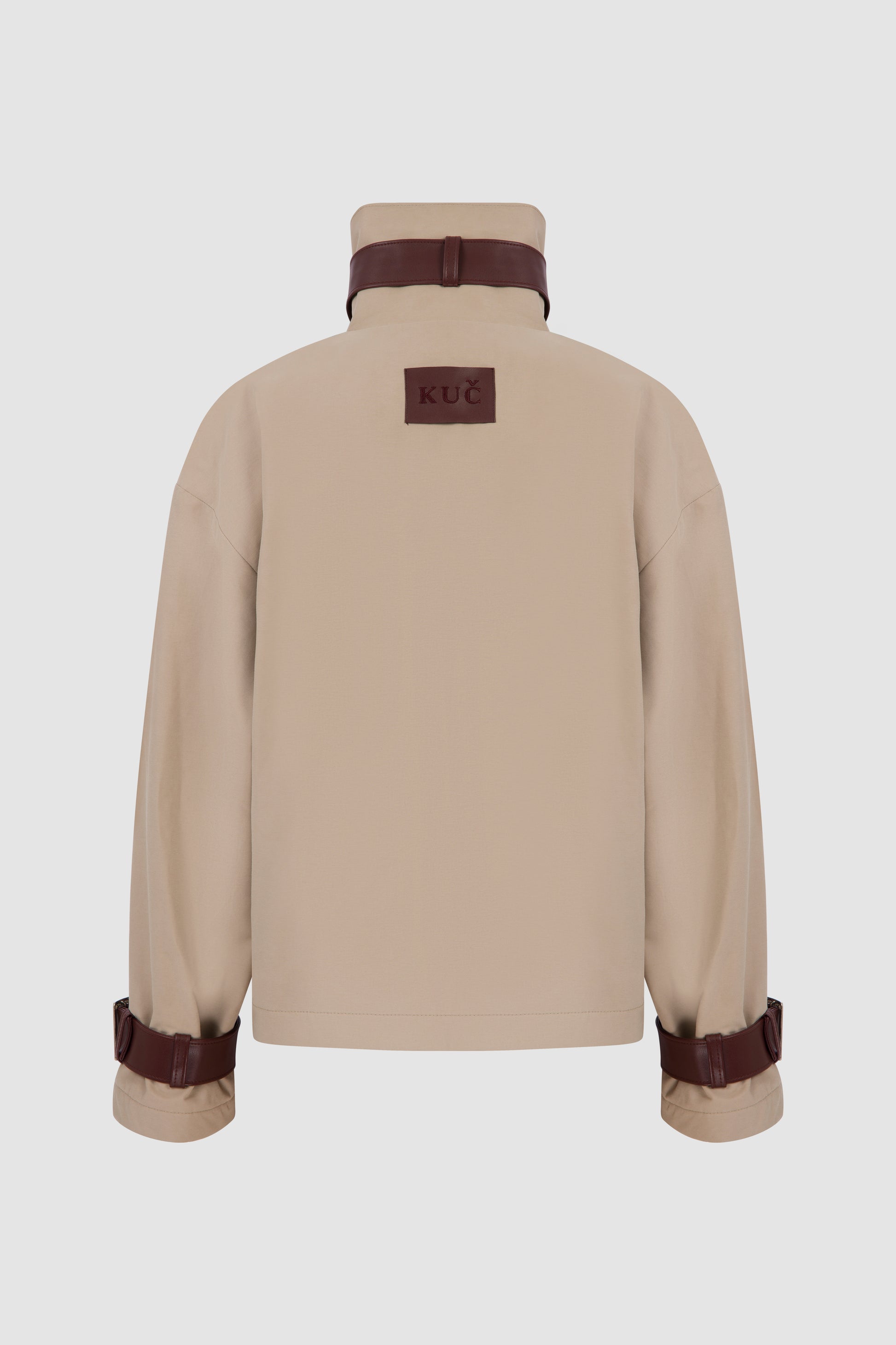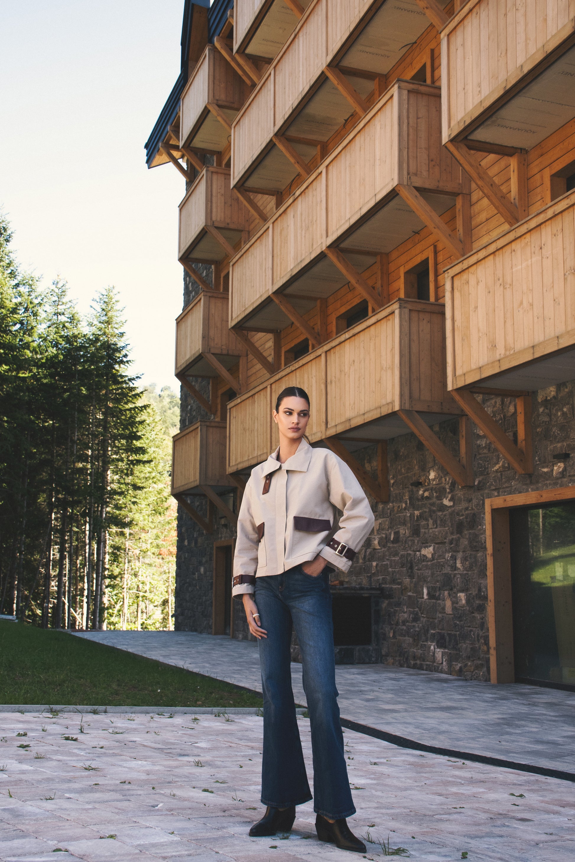 Deri detayları cekete farklı bir dokunuş katıyor.